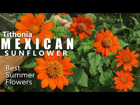 Care for Mexican sunflowers correctly as they grow Plants are drought-tolerant, but need regular water in hot summer areas with little rainfall. Provide support by staking for tithonia as it grows; this is especially important in windy areas.